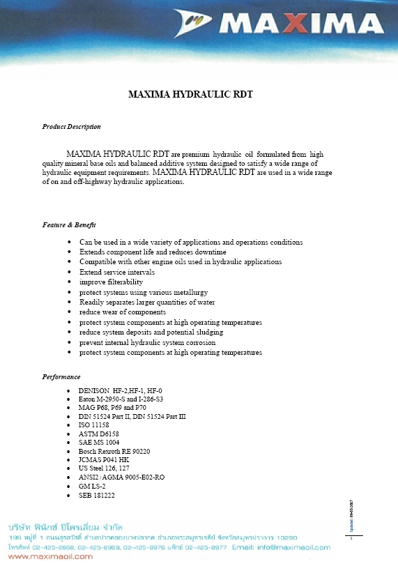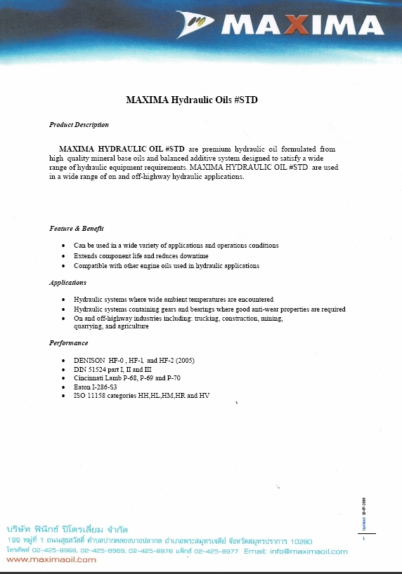 MAXIMA HYDRAYLIC #RDT, #STD 10, 22, 32, 46, 68, 100, 150, 220